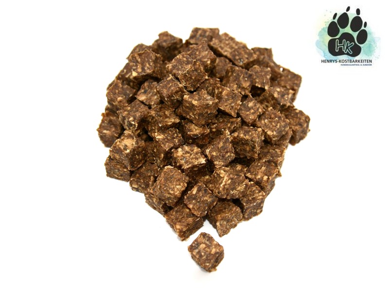 Die Würfel krümmeln nicht, eignet sich fürs Training oder als kleiner Snack für zwischendrin.